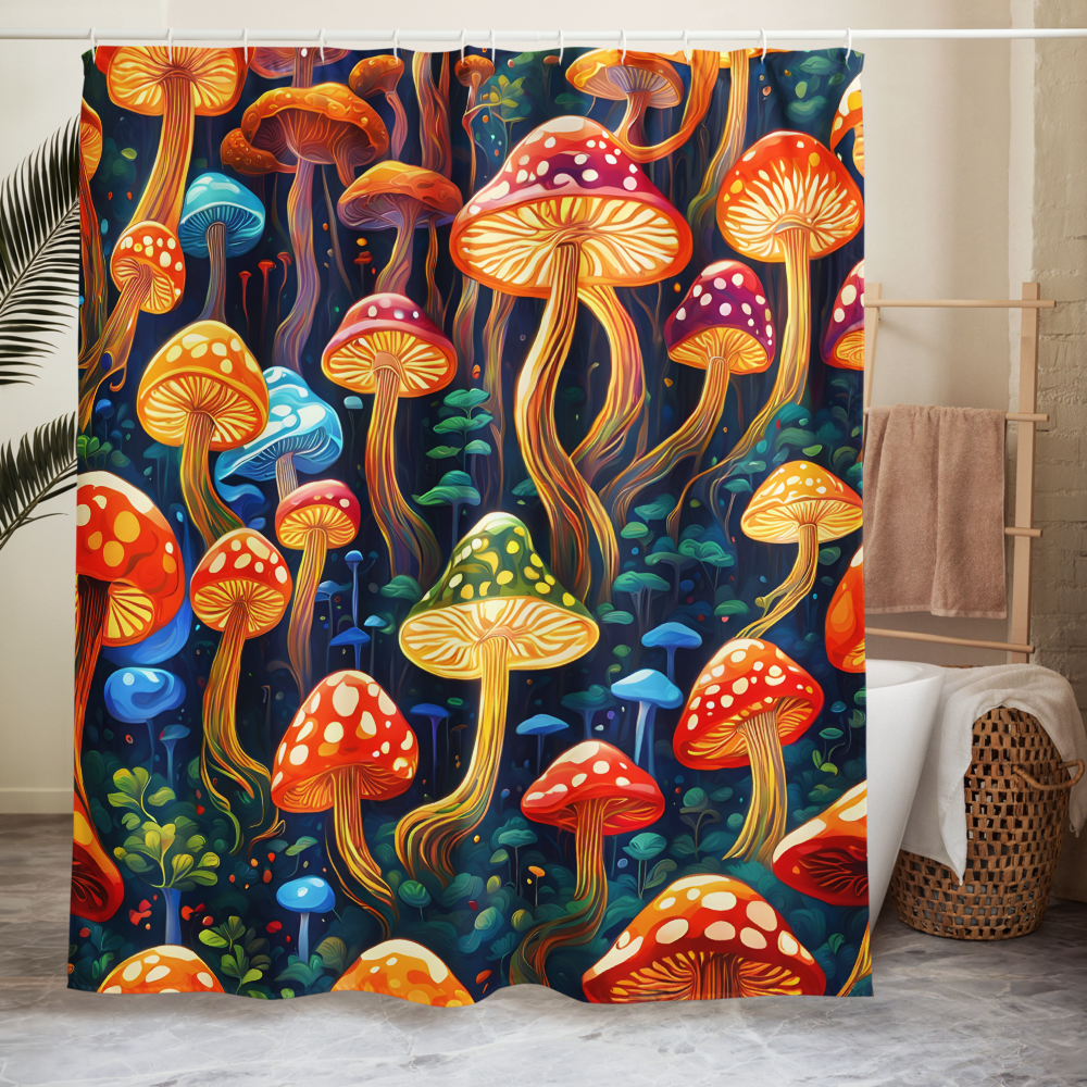Upgrade your bathroom with an original mushroom shower curtain. This durable, water-resistant curtain is easy to install and maintain. Order it for yourself or as a gift for a housewarming or wedding.