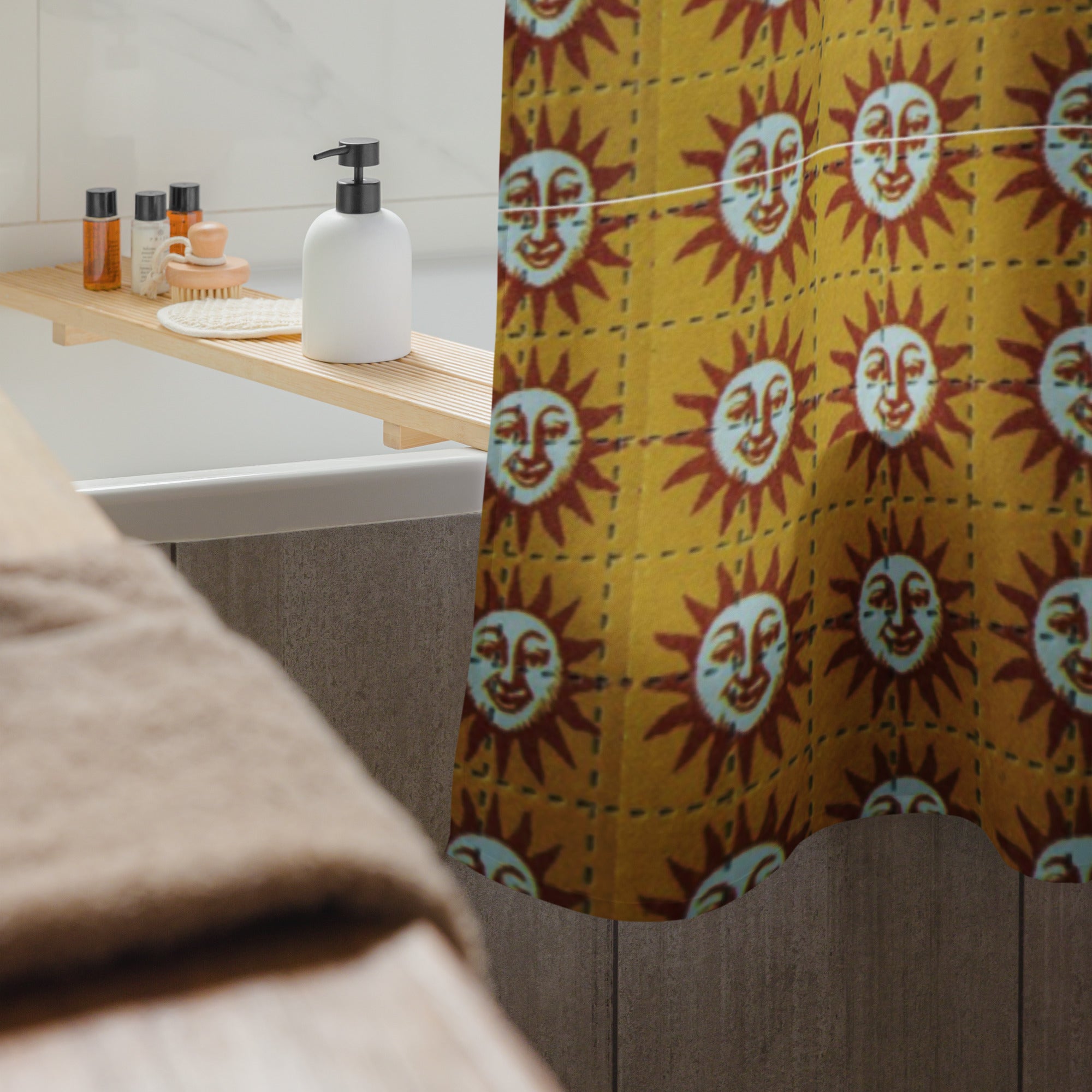 Upgrade your bathroom with an trippy 60s original orange sunshine lsd shower curtain. This durable, water-resistant curtain is easy to install and maintain. Order it for yourself or as a gift for a housewarming or wedding.